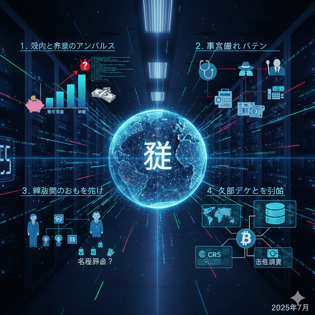 海外資産・仮想通貨: 国際基準(CRS)に基づいた海外口座情報の自動交換や、暗号資産(仮想通貨)の取引データもAIの分析対象となり、申告漏れを厳しくチェックします。